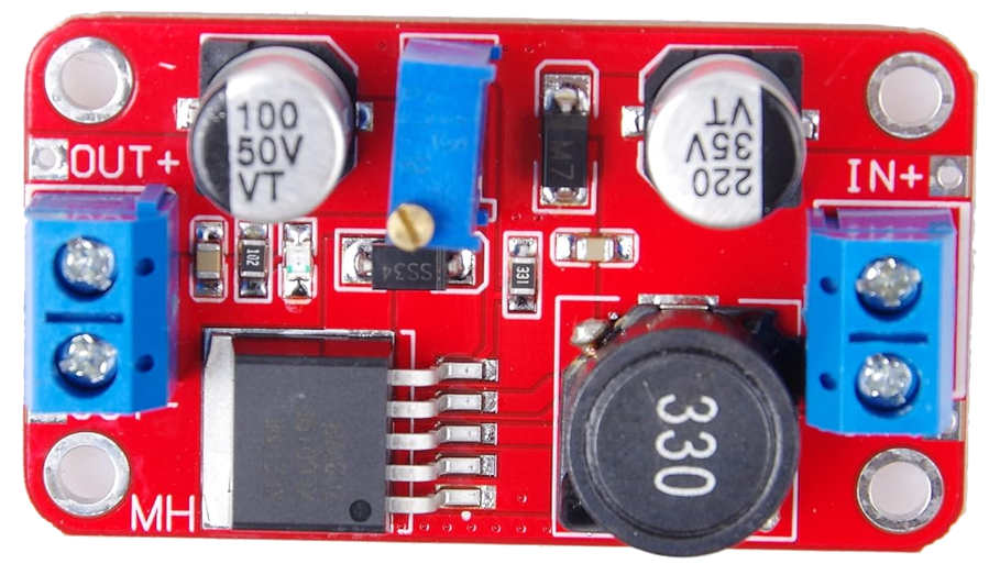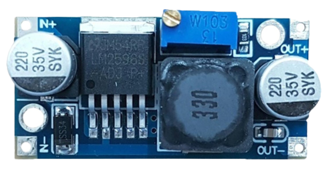 LM2596S DC-DC Buck Converter Input voltage: 4V-35V Output voltage: 1.23V to 30V Input Current: 3A (maximum)